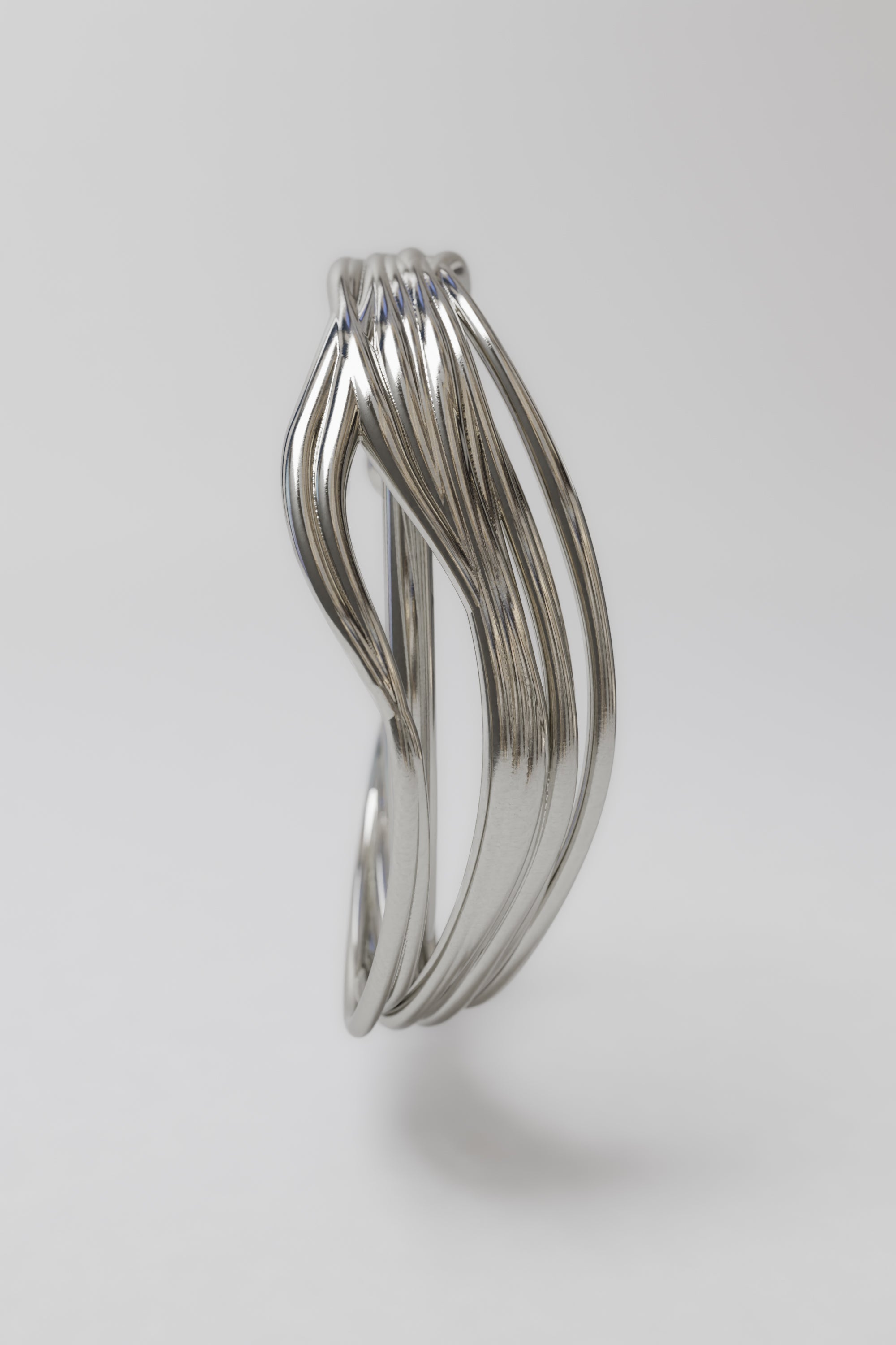 THESE PRINCIPLES CREATE A COMPLEX NETWORK OF MOVEMENT, DISTANCE, AND COMMUNITY — A METAPHOR FOR SOCIAL INTERACTION AND COLLECTIVE DYNAMICS. THE FLIGHT PATHS ARE GENERATED AS SIMULATIONS IN A 3D PROGRAM. THIS DATA IS USED TO CREATE THE SHAPES OF THE JEWELRY PIECES, TRANSLATING DIGITAL MOVEMENT SEQUENCES INTO PHYSICAL OBJECTS.